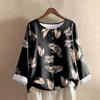 Женский повседневный топ с длинным рукавом и круглым вырезом, из хлопка и льна, с принтом в стиле ретро с градиентом
