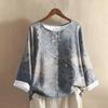 Женский повседневный топ с длинным рукавом и круглым вырезом, из хлопка и льна, с принтом в стиле ретро с градиентом — купить товар онлайн с бесплатной доставкой по всему миру!
