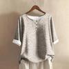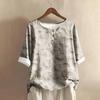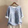 Женская модная и повседневная рубашка с полурукавом, круглым вырезом, принтом, из хлопка и льна, блузка-топ