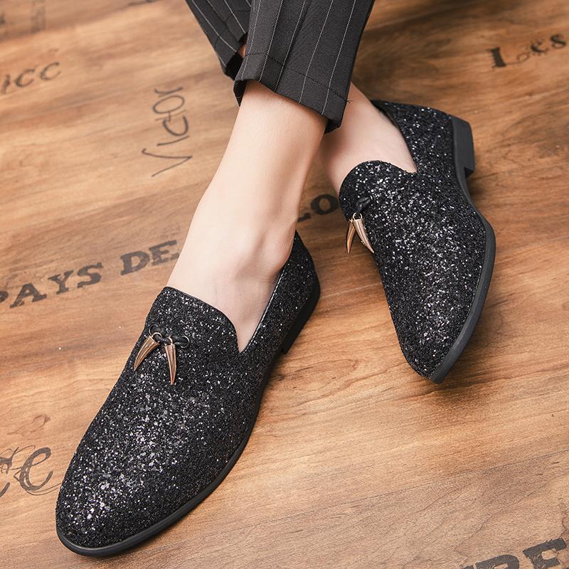 Тренд Новые Слипоны с Блестками и Пайетками для Мужчин Остроносые Лакированные Повседневные Туфли Свадебное Платье Обувь для Выпускного