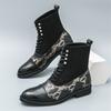 Зимняя Новая Мода Змеиный Принт Комбинированные Мотоциклетные Ботильоны с Острым Носком Высокие Для Мужчин На Плоской Подошве Обувь на Все Случаи Жизни Zapatos Hombre