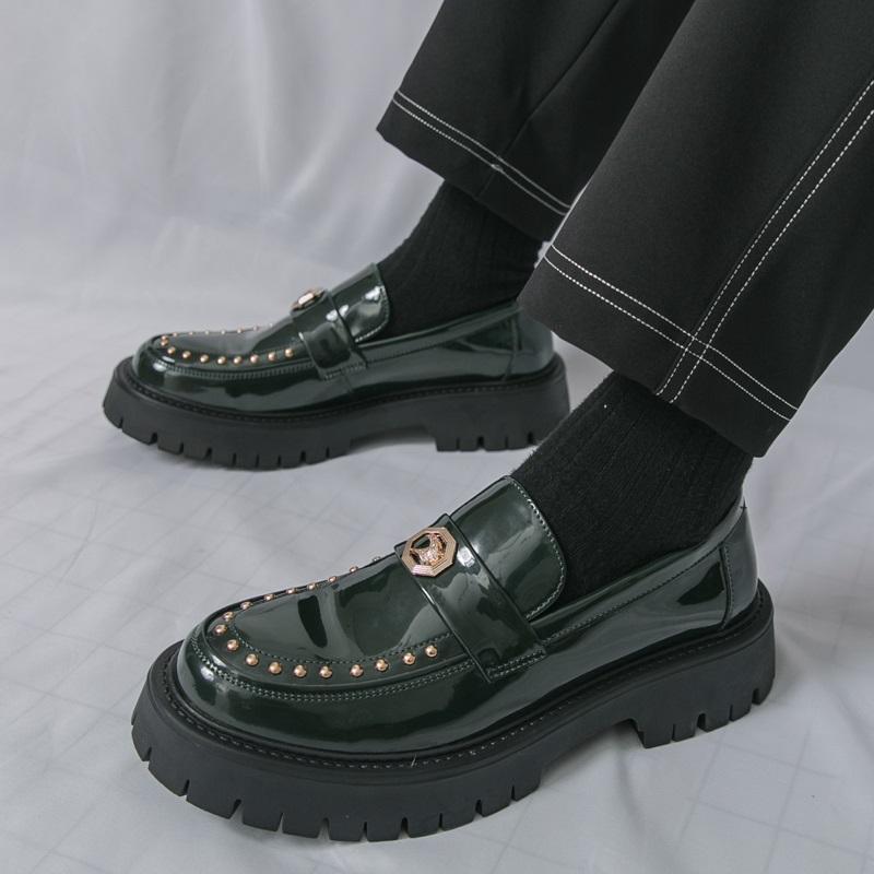 Дизайнер Моды Новые Зеленые Черные Лоферы с Заклепками Для Мужчин Балетки Мужские Для Ходьбы Обувь для Увеличения Роста Деловые Платья Мокасины