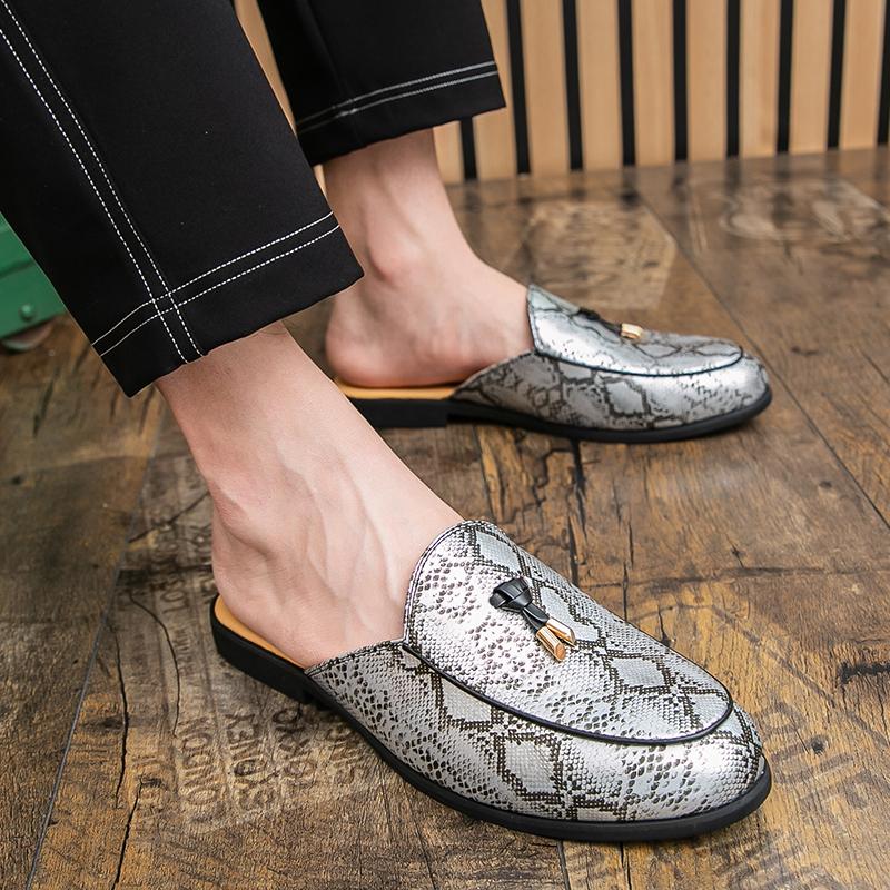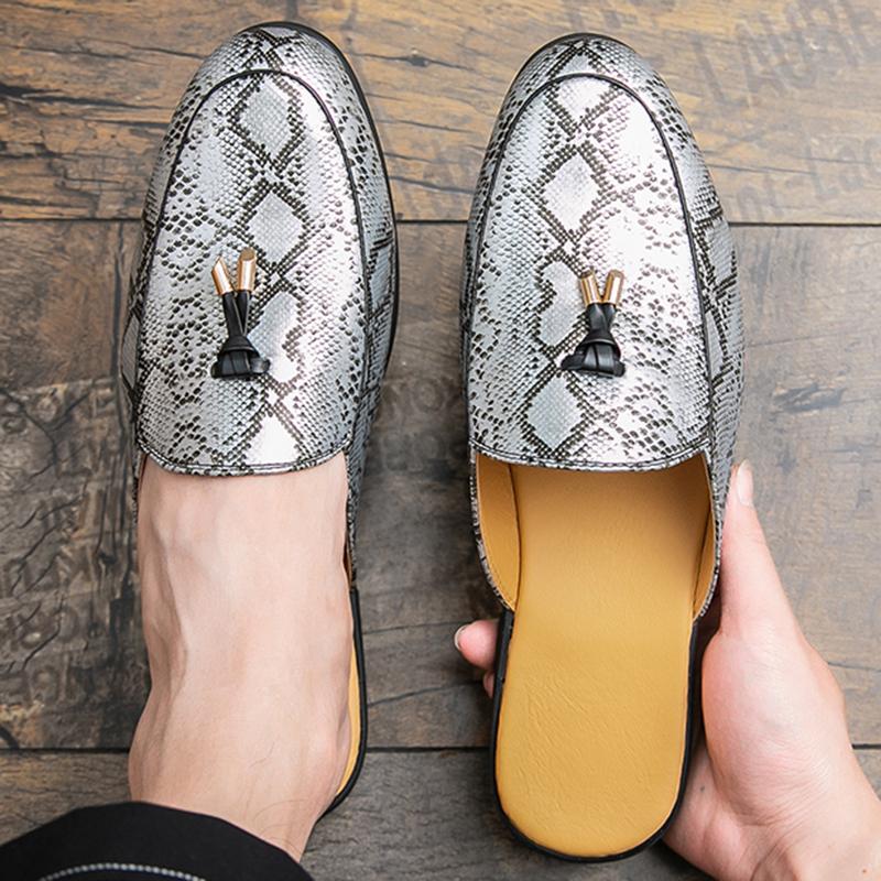 Модный дизайнер Новые мужские полушлепанцы лоферы Повседневный шарм Змеиный узор Кожаные мюли Мокасины Дышащая обувь для вождения