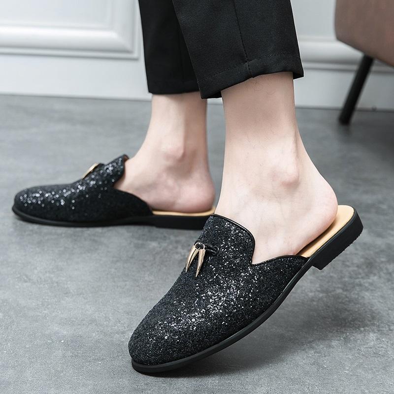Дизайнерские Новые Мужские Лоферы-Полушлепанцы с Кисточками и Пайетками, Мужские Повседневные Мюли из Лакированной Кожи, Мокасины, Дышащая Обувь Слипоны