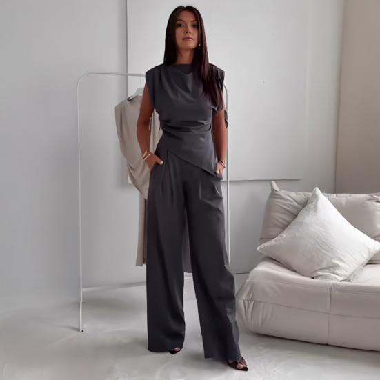 Его свободный крой не только подчеркивает ваш силуэт, но и обеспечивает максимальный комфорт при ношении в течение всего дня.. Сочетайте этот универсальный женский костюм с туфлями на высоком каблуке, сандалиями или кроссовками для создания различных стильных образов.. Идеально подходит для повседневной носки, офиса, уличной моды, прогулок, отпуска, путешествий и активного отдыха.