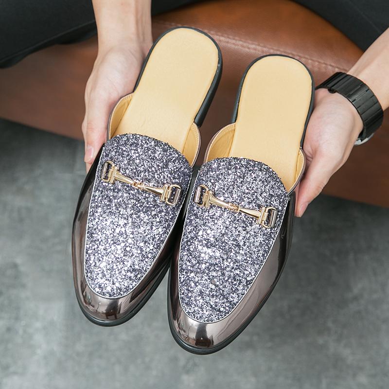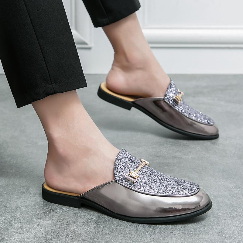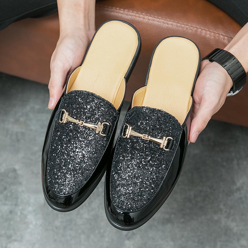 Роскошный дизайнерский бренд Мужские кожаные золотые черные сандалии Полупайеточная обувь для мужчин Мюли Повседневная обувь Шлепанцы Лоферы Тапочки