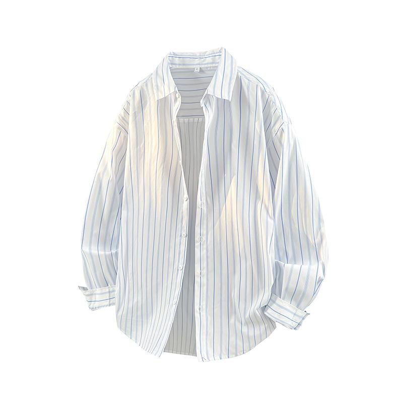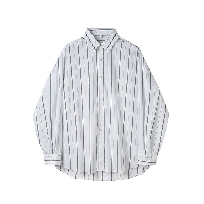 Весенне-летняя контрастная полосатая рубашка с лацканами, мужская ретро свободная повседневная рубашка-кардиган