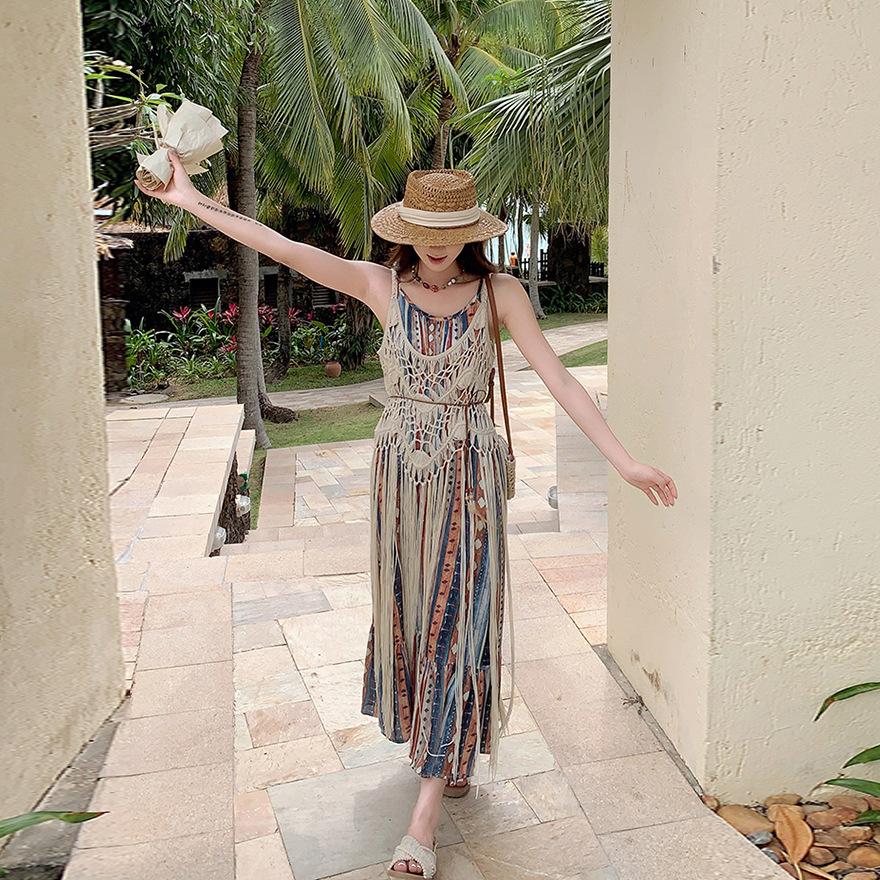 Летнее новое платье на бретелях женский пляжный отпуск блузка юбка комплект две вещи