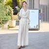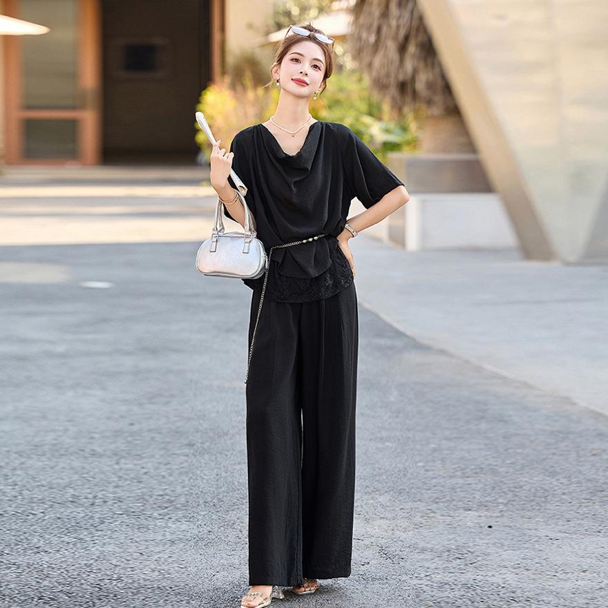 Летний новый дизайн, модный кружевной топ с воротником-стойкой, широкие брюки, женский костюм — купить товар онлайн с бесплатной доставкой по всему миру!