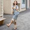 Джинсовый юбочный костюм, летний новый модный темпераментный жилет, юбка, носить, комплект из трех предметов