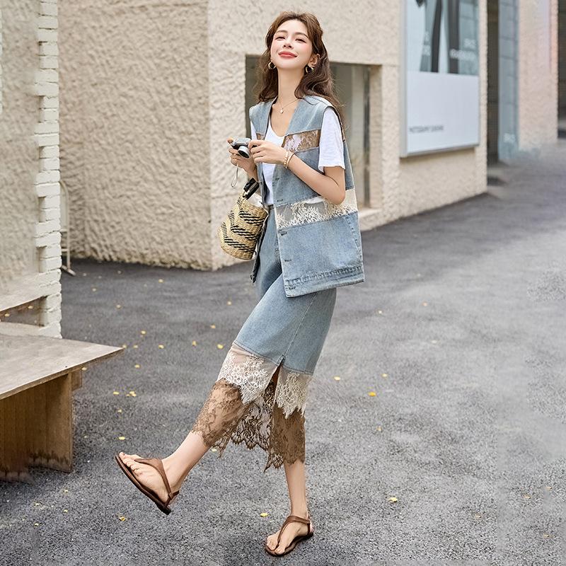 Джинсовый юбочный костюм, летний новый модный темпераментный жилет, юбка, носить, комплект из трех предметов — купить товар онлайн с бесплатной доставкой по всему миру!