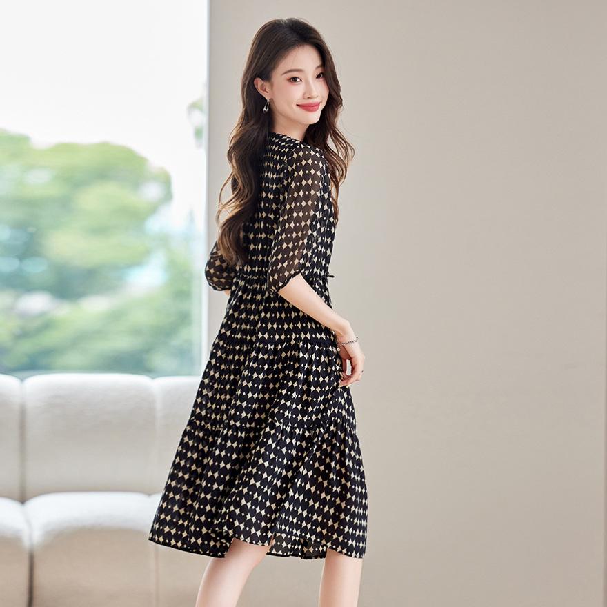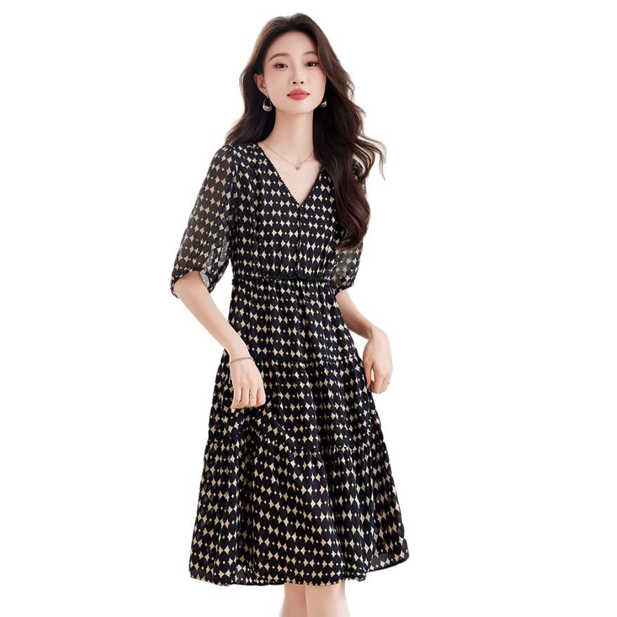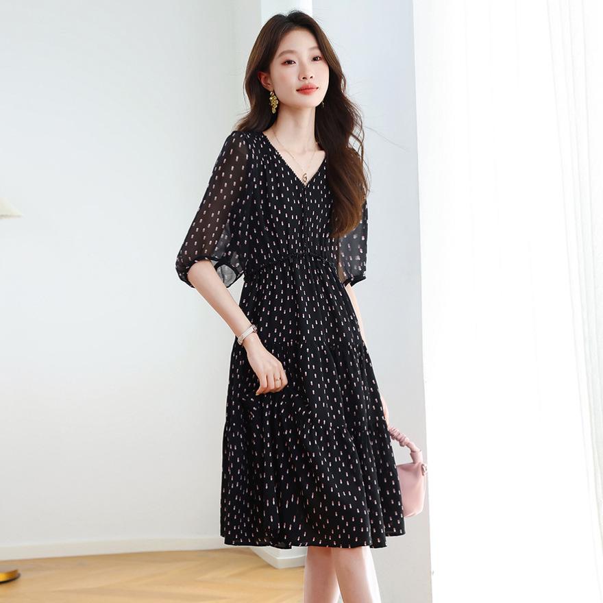 Летний новый темперамент элегантная талия тонкая юбка цветочный миди и длинное платье женщины