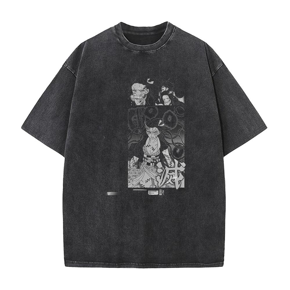 Аниме Клинок, рассекающий демонов Камадо Нэдзуко Каваи Футболка с графикой Мужская Женская Футболки Манга Хлопковая футболка с эффектом стирки Харадзюку Мужская Винтажные топы
