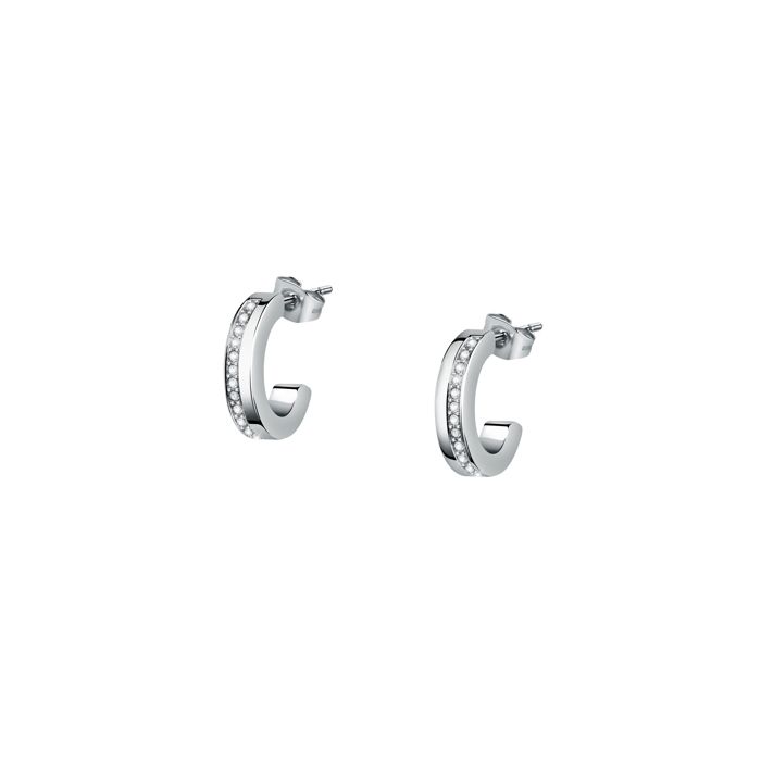 Boucles d'oreilles créoles - SAUP04 - Acier - Cristal - Blanc - Femme