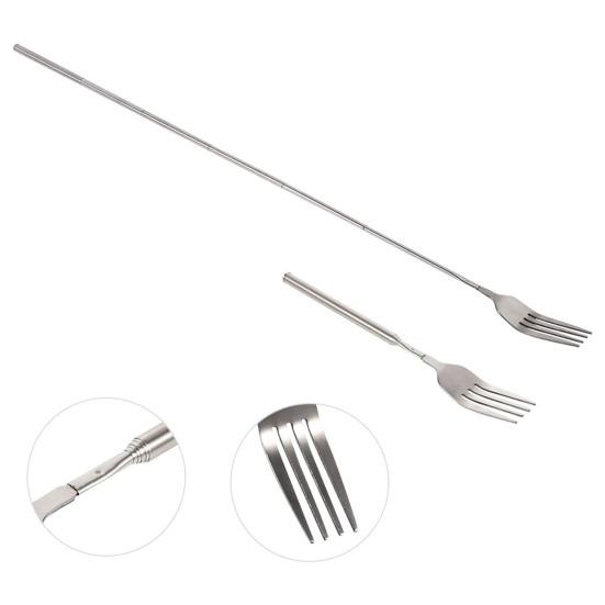 Представляем телескопическую вилку — идеальный инструмент для удобного и безопасного приема пищи! Независимо от того, находитесь ли вы за столом, на вечеринке или на барбекю, эта выдвижная вилка из нержавеющей стали позволит вам наслаждаться едой, не перемещаясь.. Благодаря длинной ручке вы можете готовить на гриле свои любимые блюда, не подходя слишком близко и не рискуя обжечься.. Телескопическая функция позволяет легко регулировать длину в диапазоне от 22,1 см до 64,6 см, обеспечивая комфорт и универсальность.. Эта выдвижная вилка, изготовленная из пищевой нержавеющей стали, гарантирует безопасность и долговечность.. Это идеальный компаньон для походов или приготовления на гриле дома..