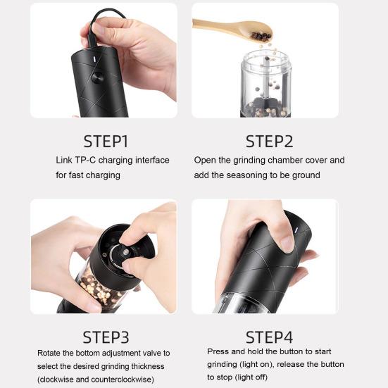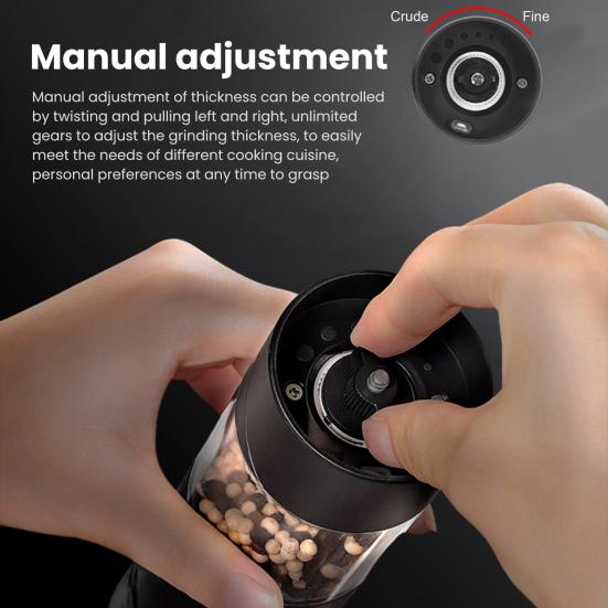 Удобный и эффективный: Наша беспроводная мясорубка для перца позволяет легко и быстро приготовить приправы одним нажатием кнопки.