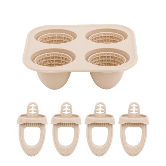 Предназначен для младенцев: Эта силиконовая форма для мороженого имеет маленькое отверстие, идеальное для младенцев, и позволяет создавать милые конические эскимо с рельефной текстурой для удобного захвата.. Каждая форма вмещает 17 мл, что позволяет одновременно приготовить четыре независимых замороженных эскимо.
