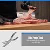 Двухфункциональный дизайн: Благодаря острым прямым краям для точной обрезки жира и изогнутым кончикам для легкого удаления мембраны, этот инструмент для ребер из нержавеющей стали оптимизирует этапы подготовки, экономя время и повышая эффективность.