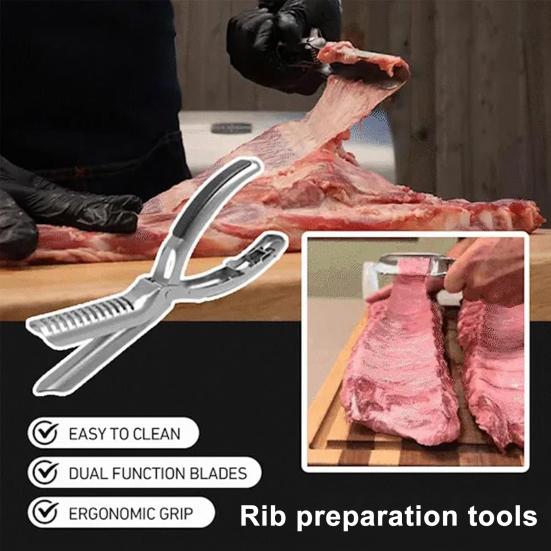 Оснащенный эргономичной нескользящей ручкой, этот удалитель ребер обеспечивает удобный захват, который снижает усталость рук и обеспечивает улучшенный контроль для точной обработки во время приготовления мяса и сеансов барбекю.. Его универсальность проявляется в том, что он оказывается многоцелевым инструментом для приготовления мяса, идеально подходящим для ребер, свиной лопатки, говяжьей грудинки, птицы и многого другого.. Будь вы мясником, шеф-поваром или просто любителем барбекю, желающим упростить процесс приготовления, этот инструмент — надежное решение «все в одном».