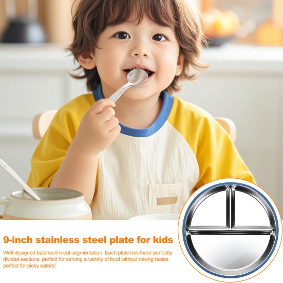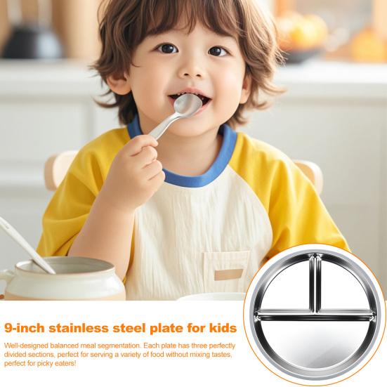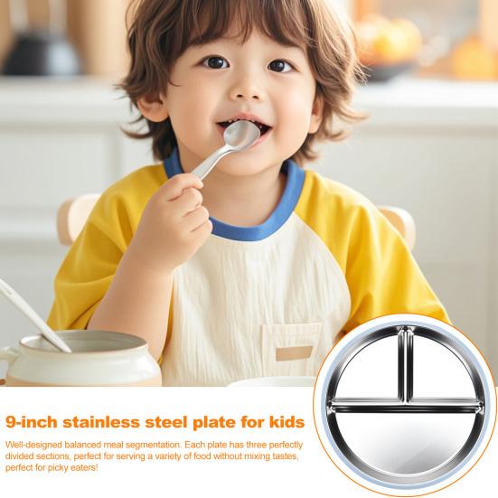 Обед без беспорядка: Попрощайтесь с перевернутыми тарелками с нашими детскими тарелками из нержавеющей стали со съемным основанием на силиконовой присоске.. Прочные присоски надежно крепятся к подносам и столикам стульчиков для кормления, предотвращая проливание и способствуя самостоятельному приему пищи у малышей.