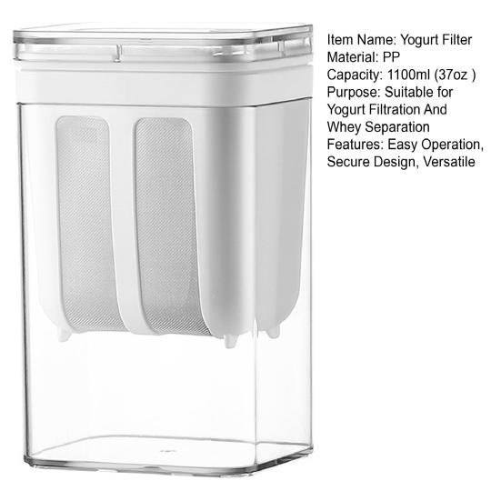 Универсальная функциональность: Помимо приготовления йогурта, этот многофункциональный фильтр можно использовать для фильтрации сыра, соусов, орехового молока и многого другого.. Снимите фильтр, и контейнер превратится в контейнер для переноски фруктов объемом 1100 мл для различных кулинарных нужд.