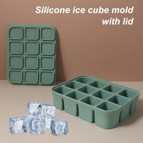 Силиконовый лоток для льда с крышкой, гибкая форма для льда без BPA на 12 кубиков, экономящая место, легко снимаемая, штабелируемая квадратная форма для льда