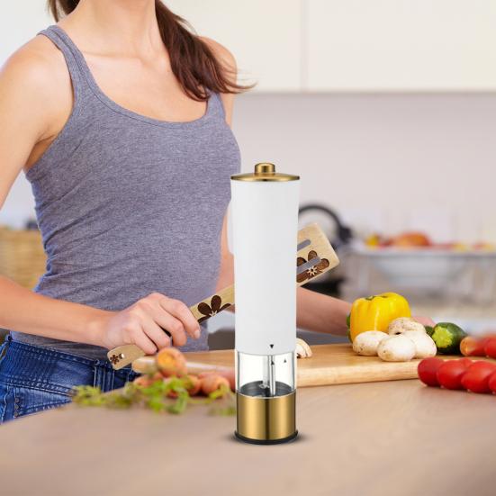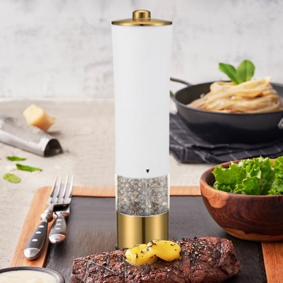 Благодаря автоматическому принципу работы просто нажмите кнопку и аккуратно поверните мельницу, чтобы с легкостью и удовольствием измельчить свежемолотые специи.. Выбирайте различные степени помола, чтобы настроить текстуру специй от грубой до мелкой.. Электрическая мельница для перца и соли оснащена высококачественными роторами для эффективной работы.
