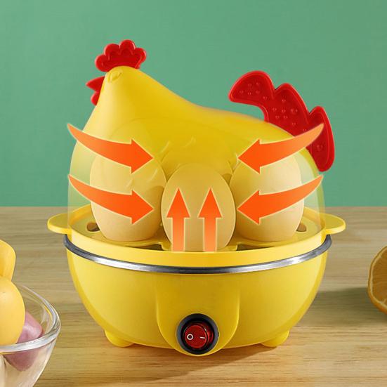 Поднимите свой ежедневный завтрак на новый уровень с помощью нашей яйцеварки с очаровательным дизайном в форме цыпленка, которая добавит нотку причудливости вашей кухне.. Увеличьте эффективность использования пространства благодаря практичной внутренней структуре, способной вместить 7 яиц, что упрощает ежедневный процесс приготовления яиц.