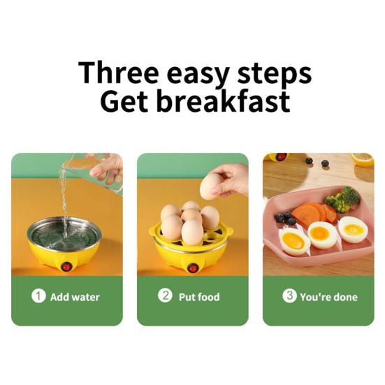Оцените универсальность нашей многофункциональной яйцеварки, которая идеально подходит для приготовления на пару батата, тыквы, кукурузы и других блюд, а также сваренных вкрутую яиц.. Превратите обычные завтраки в кулинарные изыски с паровыми яйцами и овощами, без труда выведя свои кулинарные впечатления на новый уровень.