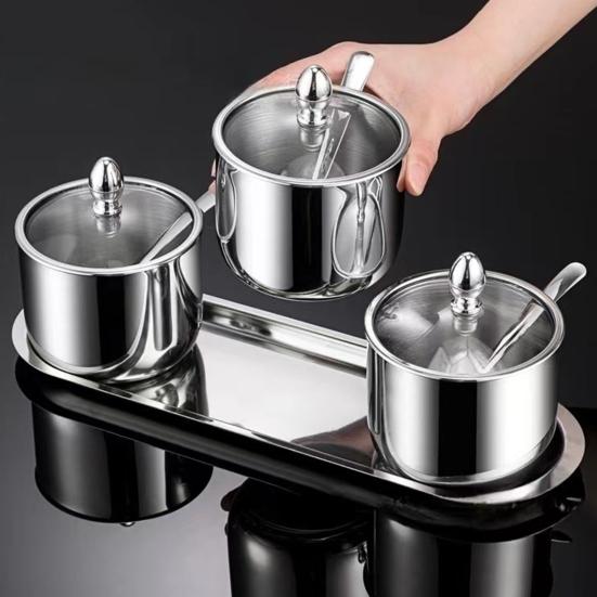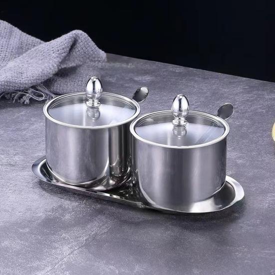 Герметичная стеклянная крышка: Прозрачная стеклянная крышка сохраняет свежесть, сохраняя при этом содержимое видимым и легко доступным.. Защитите сахар, масло и другие приправы от пыли и сохраните их качество в течение более длительного времени.