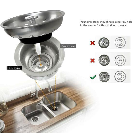 Универсальная совместимость: Диаметр 3,2 дюйма подходит для большинства стандартных сливных труб для кухонной раковины диаметром 3-1/2 дюйма в США.. Требуется узкое прямоугольное центральное отверстие для простоты установки и оптимальной производительности.