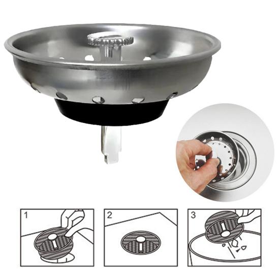 Устойчивое строительство: Корзина сливной крышки из нержавеющей стали с резиновым дном и высококачественной ручкой из АБС-пластика обеспечивает долговечность, устойчивость к коррозии и надежную работу.. Резиновое дно предотвращает засорение, плотно удерживая воду для удобного использования в раковине.