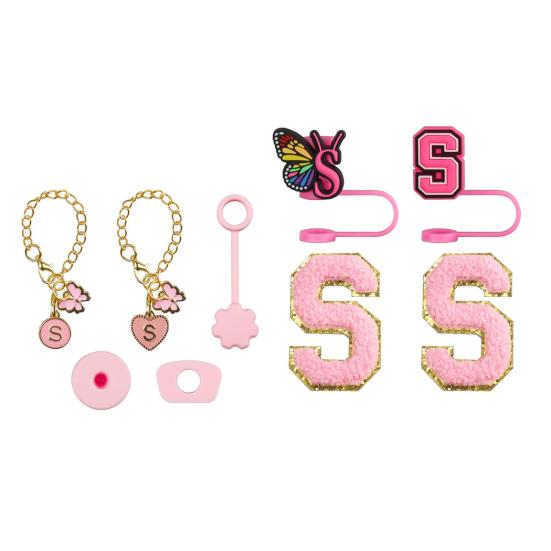 В наш комплект входят 2 наклейки с буквами S, 2 соломинки, 1 круглая герметичная пробка, 1 квадратная пробка от разлива, 1 пыленепроницаемая пробка и 2 подвески с буквами S, сочетающие в себе шарм и функциональность.. Персонализируйте свою чашку с помощью подвесок с буквами, чтобы добавить уникальный штрих, или используйте их для четкой маркировки чашки..