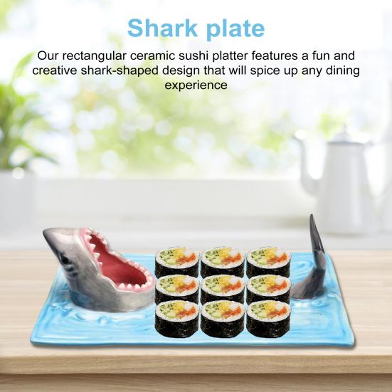 Креативный дизайн в форме акулы: Поднимите свои впечатления от ужина с нашим прямоугольным керамическим блюдом для суши с очаровательным дизайном в форме акулы.. Эта тарелка идеально подходит для пляжных тематических вечеринок, домашней кухни или встреч на Хэллоуин. Она добавит веселья к любой сервировке стола.