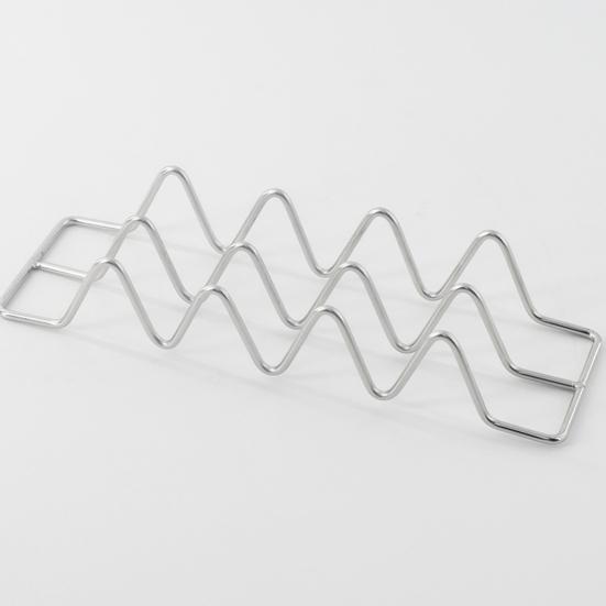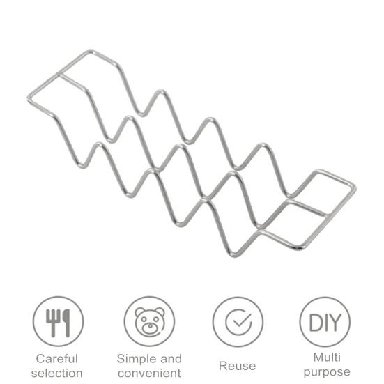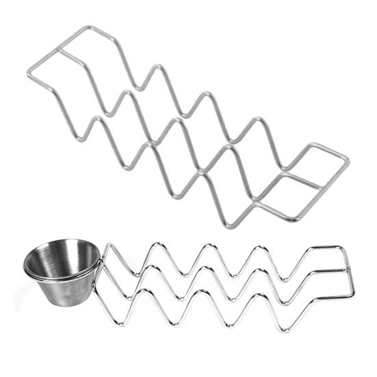 Представляем подставку для тако из нержавеющей стали, незаменимую для тако по вторникам, праздникам, прогулкам и выходным.. Этот держатель для тако, изготовленный из прочной конструкции из нержавеющей стали, гарантирует, что ваши лепешки выйдут из духовки легкими и хрустящими, улучшая вкус ваших тако.