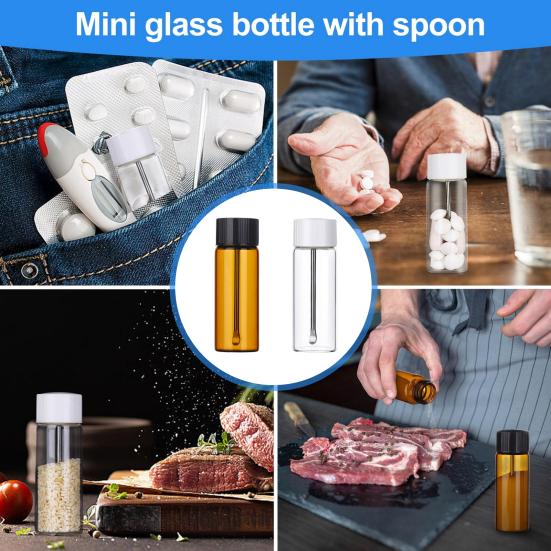 Компактный и портативный дизайн: Легкий и небольшой по размеру, каждый флакон снабжен удобной ложкой для удобного дозирования.. Эта бутылочка идеальна для использования в дороге и идеальна для того, чтобы носить с собой любимые порошки, куда бы вы ни отправились.