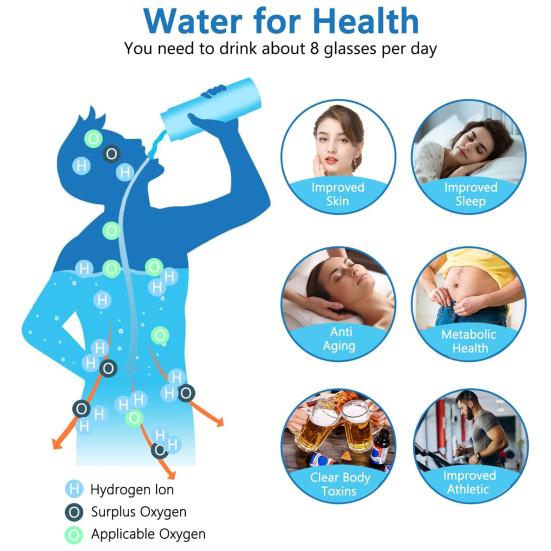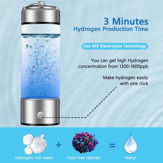Бутылка с водородной водой работает путем электролиза воды с выделением ионов водорода, эффективно снижая окислительный стресс в организме.. Независимо от того, находитесь ли вы в офисе, в пути или тренируетесь, эта портативная бутылочка — удобный способ избежать обезвоживания с помощью воды, богатой водородом..