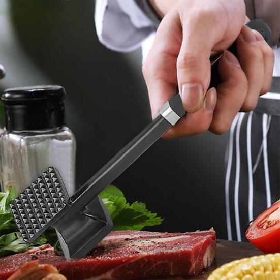 Этот двусторонний молоток позволяет раздавить мясо, чтобы ускорить приготовление, или сделать стейк мягким, чтобы он таял во рту.