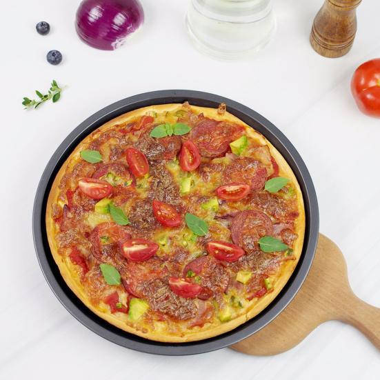 Сковорода для пиццы с антипригарным покрытием, термостойкая круглая штамповка, 12 дюймов, безопасная для духовки, форма для формы для пиццы, сковорода для тостов, кухонные принадлежности