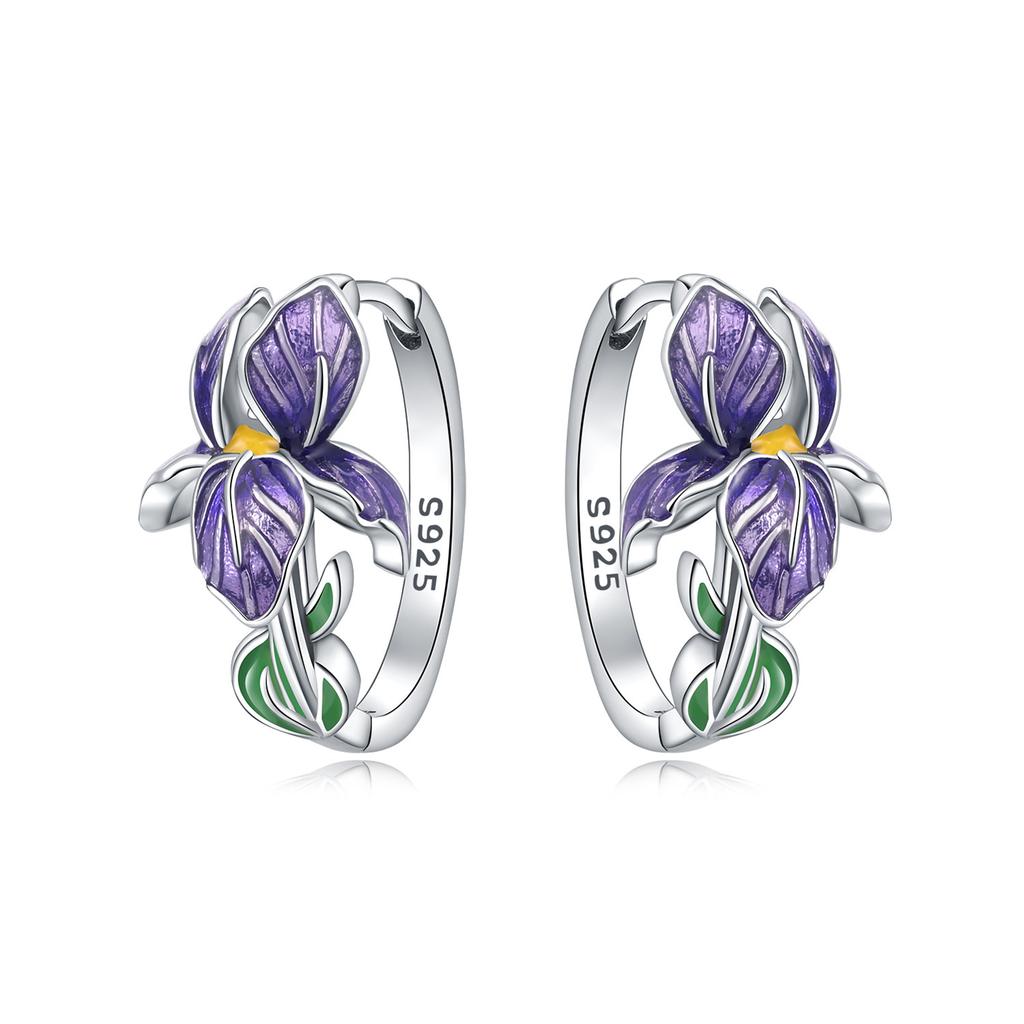Универсальные серьги-кольца из стерлингового серебра 925 пробы с дизайном фиолетового цветка для женщин