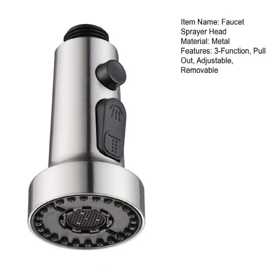 Съемная лейка для смесителя, регулируемая, 3 функции, выдвижная, металлическая, сменный наконечник, серебристого цвета, душевая головка для ванной, кухонный смеситель