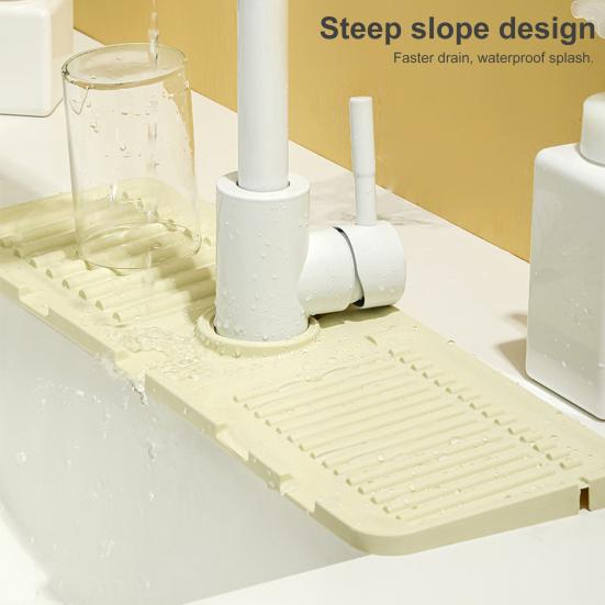 Изготовленный из мягкого силиконового материала, этот коврик не только прочный и многоразовый, но и полностью безопасный в использовании. Его уникальная конструкция наклона позволяет собранной воде быстрее поступать в раковину, что приводит к более быстрому высыханию вашей кухонной раковины. Попрощайтесь с мокрыми поверхностями и пятнами воды у крана раковины!