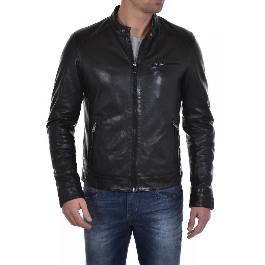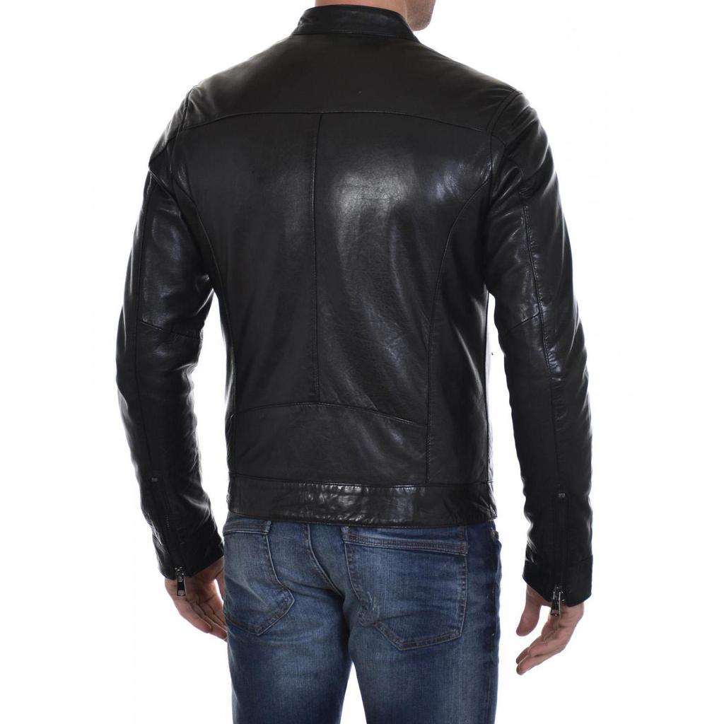 SkinOutfit Men's Genuine Lambskin Black Leather Jacket Stylish Motorcycle Bomber Biker Outerwear MJ 212