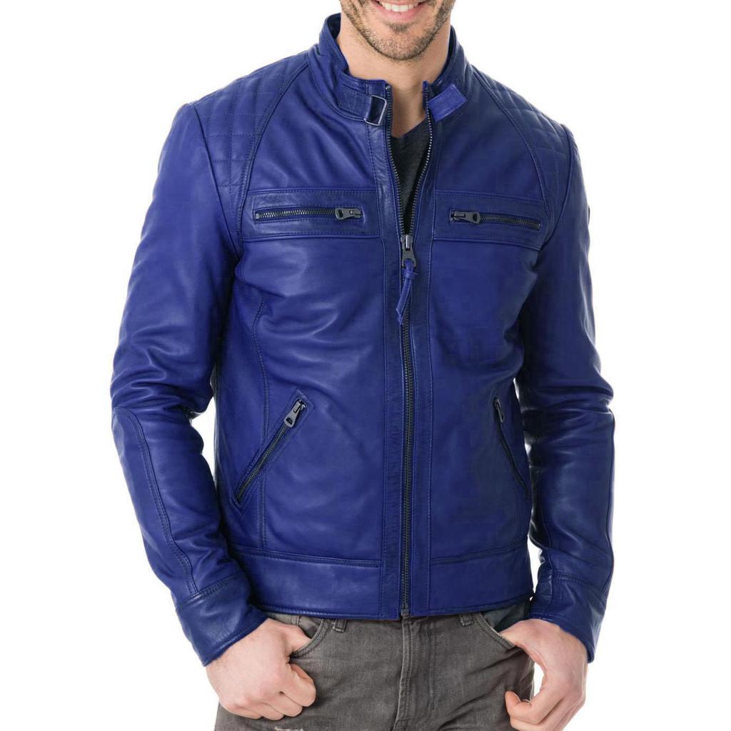 SKINOUTFIT Мужская куртка из натуральной овчины, синяя кожаная куртка, стильная мотоциклетная куртка-бомбер, байкерская верхняя одежда MJ 216