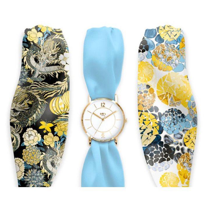 Модные часы с шелковым платком-браслетом золотисто-синего цвета — купить товар онлайн с бесплатной доставкой по всему миру!