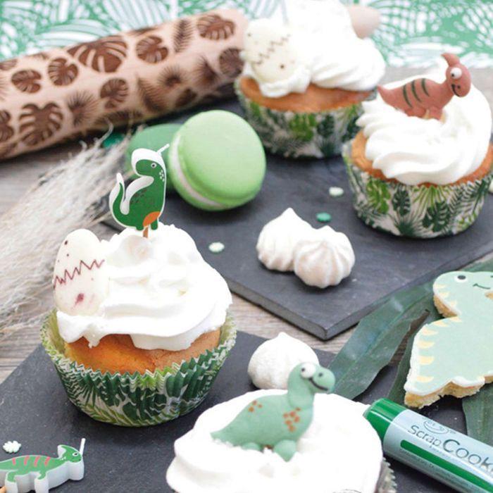 Сахарное украшение - Динозавр - 6 шт - Разноцветный - Бежевый - Идеально подходит для тортов и кексов