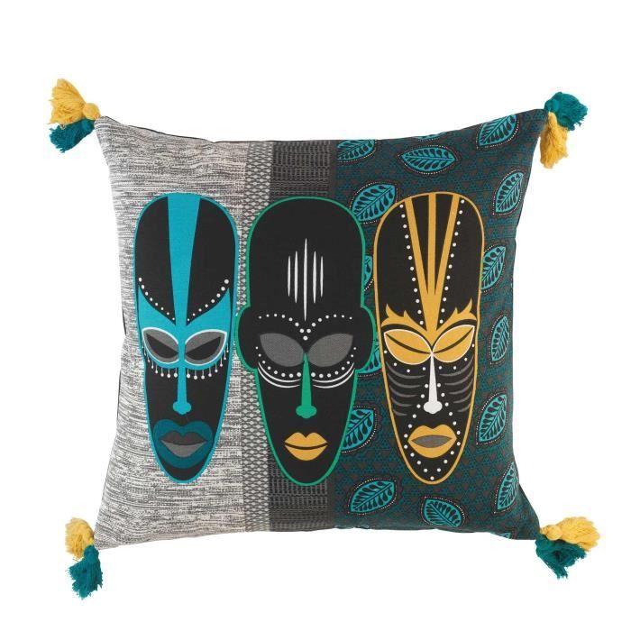 Coussin - DOUCEUR D'INTERIEUR - 45 x 45 cm - Coton 100% - Déhoussable - Ethnique