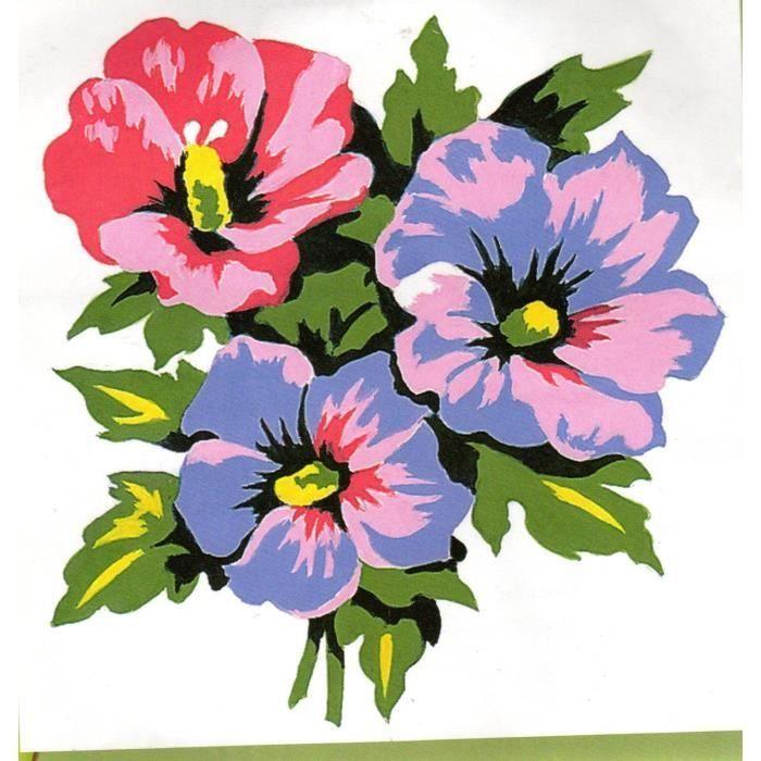 Kit Canevas - Pétunia - 14 x 14 cm - Imprimé blanc - Fournitures complètes - Aiguille incluse