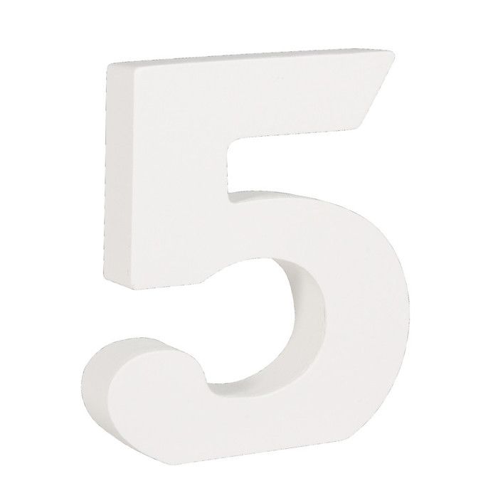 MDF-chiffre 5 , blanc, 11cm, épaisseur 2cm