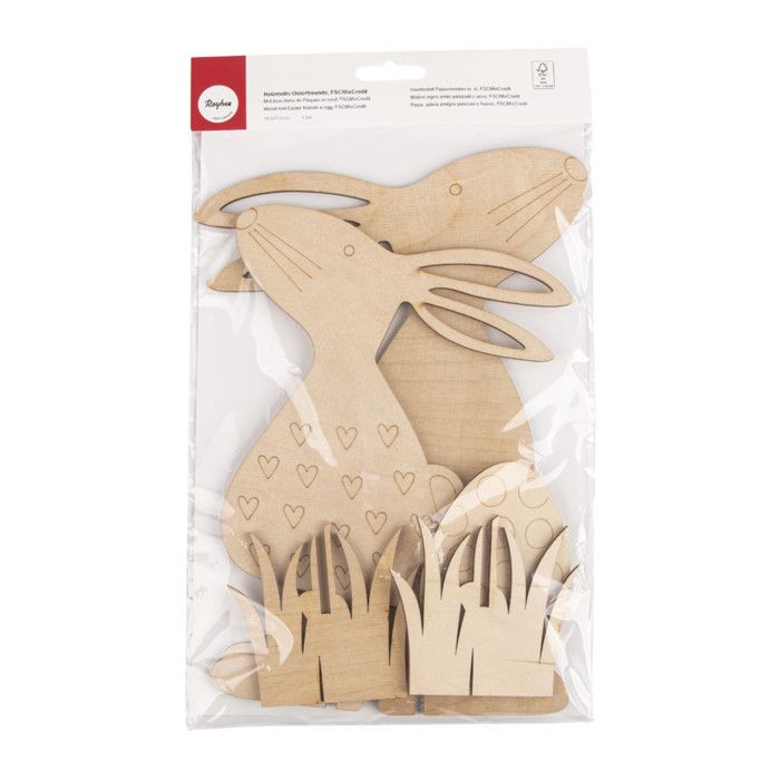 Mot.Bois Amis de Pâques av.Oeuf,FSCMixCr, nature, en 5 pièces, 19,5x27,5cm 1kit